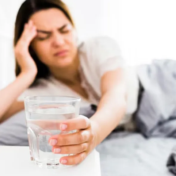 • I степень: Возникает после кратковременного употребления спиртного. Симптомы включают истощение и вегетативные нарушения: потливость, тахикардию, сухость во рту. Обычно проходят через несколько дней без серьезных последствий.